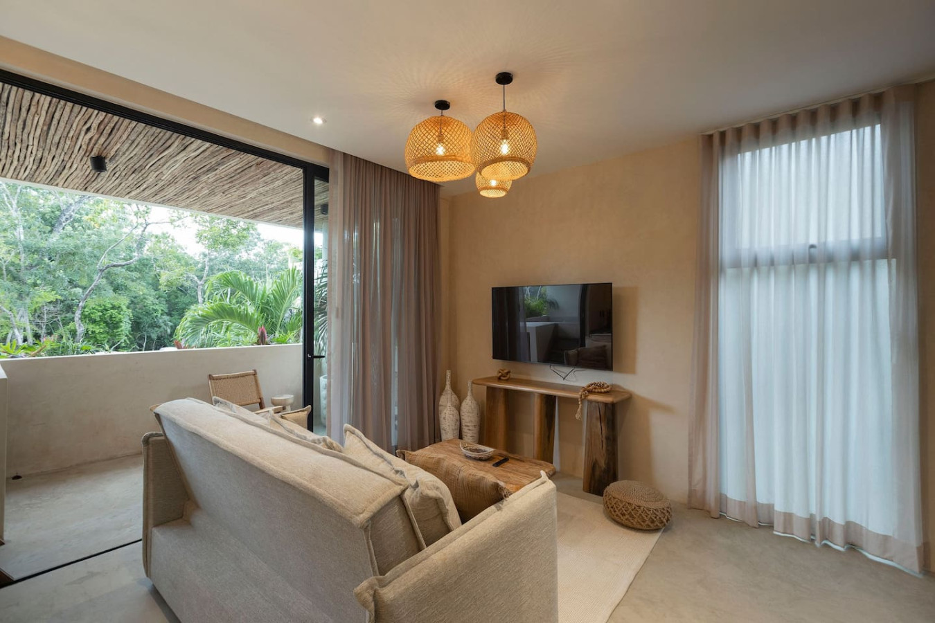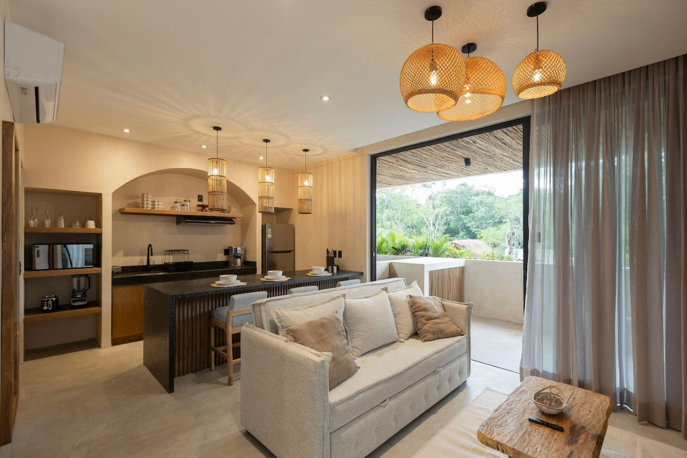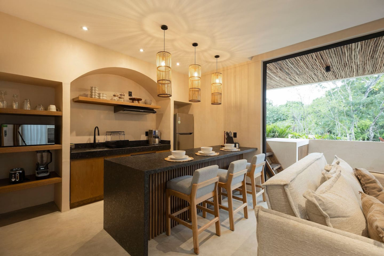WOW is all I can say. My husband and I have been traveling to TULUM from NY,USA for almost 10 years now, we have stayed on the beach, close to town -everything in between. We choose this space because It seemed the perfect ( and short) distance from both the hotel zone and Tulum town- the best of both worlds- and it sure was. The condo Is brand new, all gorgeous amenities with a private plunge pool and a massive pool on site. Every aspect was pristine, chic and modern with a Tulum vibe of course. check in was a breeze and the team was communicative the entire time and answered any questions we had. We will be staying here over and over! AMAZING.