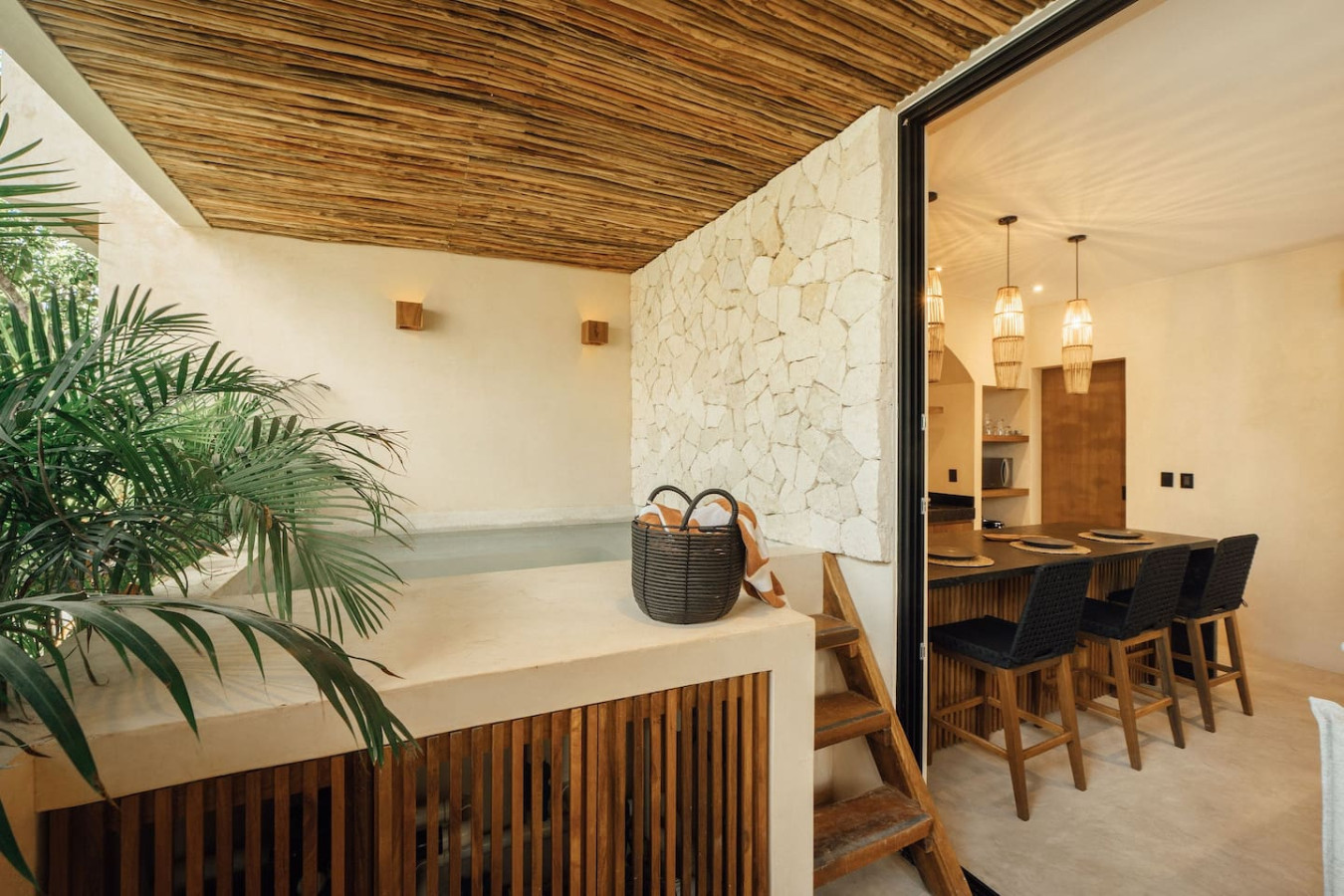 / nightWelcome to your Tulum escape! Each unit boasts a private plunge pool, inviting you to relax and take in either the lush greenery of Tulum’s jungle. This unit includes a fully equipped kitchen, high-end appliances, a plush king-sized bed, and a dedicated workspace for digital nomads. The sofa bed adds flexibility for families or small groups of up to four. A washer and dryer complete this elegant retreat, designed for both comfort and sophistication in the heart of Tulum. Experience the magic of Tulum at Satori, nestled in Region 15 just 6 minutes from the main avenue and 1 km into the jungle, providing the perfect blend of tranquility and easy access to the action. Only 3.5 km away, dive into the vibrant hotel zone, with its numerous beach clubs lining the stunning Caribbean coast. The route from Tulum Avenue offers convenient access to shops, restaurants, pharmacies, and a gas station. For a lively evening, the renowned Calle 7 in La Veleta, with its eclectic mix of restaurants, bars, and boutiques, is just a short trip away. Arriving at Your Tulum Escape: We want your arrival to be as seamless as possible. You’ll find convenient parking available directly in front of the condo. We recommend you download the directions and the internet password for the common areas so you can access the access code for your accommodation Check-in: 3:00 PM Check-out: 11:00 AM Housekeeping: Complimentary Housekeeping: Enjoy a free cleaning service every three days of your stay. This includes tidying up the bathrooms and kitchen, making the beds, and cleaning the floors. Extra Cleaning: If you’d like a more thorough cleaning or more frequent service, just let your concierge know. (Additional fees apply and are subject to availability). Bedding & Towels: Linen Changes: For stays longer than six days, fresh linens and towels will be provided during your complimentary cleaning. In-Unit Laundry: For your convenience, each unit has a washer and dryer. You can also request extra linen changes through your concierge for a small fee. Electricity: Power Supply Notes: Due to ongoing development in Tulum, occasional power outages may occur due to work by the CFE (Mexico's Federal Electricity Commission). These outages are sometimes announced in advance, but schedules can change. During the rainy and hurricane seasons, outages can be more frequent and last longer. What We Provide: We have flashlights and rechargeable fans available for your use. Electricity Usage: We’ll take a meter reading at check-in and check-out. Your reservation includes ___ kw/h per day. Usage beyond this will be charged at __ per kw/h. Internet Access: Wi-Fi Details: You’ll receive the Wi-Fi network name and password upon arrival. Tech Support: Please contact your concierge if you experience any issues with the internet. Possible Disruptions: Internet service may be affected during heavy rains and hurricanes. Water: Tap Water: The tap water is not suitable for drinking or cooking, but it’s perfectly safe for brushing your teeth and showering. Waste Disposal: Recycling & Trash: Each unit has separate bins for organic and inorganic waste. Trash Removal: Our housekeeping staff will empty the trash during your complimentary cleanings. There are also larger bins available for guests outside the building. Air Conditioning: Optimal AC Use: The ideal setting for the mini-split AC units in this area is 24°C (75°F). Maintenance Requests: Please report any issues with the AC immediately. Responsible Use: Please turn off the AC/heating when you leave the unit. Hot & Cold Water: Faucet Operation: In Mexico, turning the tap to the right is for cold water, and turning it to the left is for hot water. Hot Water Warm-Up: Please note that it may take a few minutes for the hot water to come through. Your Well-being is Our Priority: At Satori, we value communication with our guests and look forward to meeting you. We will be available at the property from 9:00 a.m. to 6:00 p.m. to provide you with the best service. In case of an emergency outside of these hours, please contact any member of our staff or the security guard, who will be ready to assist you. Relaxed among nature It is advisable to rent a car, or motorcycle for easy access to the beach and town. Bikes rented on site. Welcome to Satori Tulum, an exclusive sanctuary nestled in the heart of Tulum’s lush jungle. Here, luxury meets nature in perfect harmony, offering you an unparalleled getaway that blends refined architectural design, high-quality natural materials, and vibrant greenery. Immerse yourself in an oasis featuring two spectacular main pools, thoughtfully curated spaces, and a serene ambiance designed to inspire relaxation and connection. While our location is a quick 7-minute drive from both Tulum’s vibrant town center and pristine beaches, the tranquil jungle setting ensures a peaceful retreat from the bustle. Please note that construction is ongoing nearby, with light noise possible between 9 am and 7 pm. However, the serenity of Satori Tulum and its wealth of amenities will undoubtedly make your stay memorable.