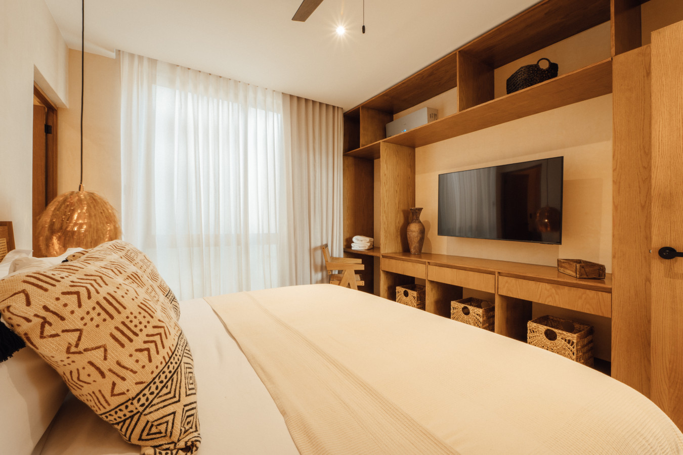 / nightWarmth & bold charm collide! Rich terracotta hues & a vibrant green sofa bed infuse energy & style. Unwind in your private plunge pool w/ lush Tulum jungle views. Inside, find modern luxury: fully equipped kitchen, premium appliances, plush king-sized bed, & a dedicated desk for digital nomads. Space for 4 guests, washer/dryer included. Your vibrant escape awaits! Experience the magic of Tulum at Satori, nestled in Region 15 just 6 minutes from the main avenue and 1 km into the jungle, providing the perfect blend of tranquility and easy access to the action. Only 3.5 km away, dive into the vibrant hotel zone, with its numerous beach clubs lining the stunning Caribbean coast. The route from Tulum Avenue offers convenient access to shops, restaurants, pharmacies, and a gas station. For a lively evening, the renowned Calle 7 in La Veleta, with its eclectic mix of restaurants, bars, and boutiques, is just a short trip away. Arriving at Your Tulum Escape: We want your arrival to be as seamless as possible. You’ll find convenient parking available directly in front of the condo. If you are arriving by taxi or private transfer, you can be dropped off right at the entrance, where our team will be waiting to warmly welcome you and show you around. Check-in: 3:00 PM to 5:00 PM. Our staff will be available to greet you and hand over the keys in person. After 6:00 PM: Check-in is done at the reception with the security guard. We will send all the instructions to access your accommodation. Housekeeping: Complimentary Housekeeping: Enjoy a free cleaning service every seven days of your stay. This includes tidying up the bathrooms and kitchen, making the beds, and cleaning the floors. Extra Cleaning: If you’d like a more thorough cleaning or more frequent service, just let your concierge know. (Additional fees apply and are subject to availability). Bedding & Towels: Linen Changes: For stays longer than seven days, fresh linens and towels will be provided during your complimentary cleaning. In-Unit Laundry: For your convenience, each unit has a washer and dryer. You can also request extra linen changes through your concierge for a small fee. Electricity: Power Supply Notes: Due to ongoing development in Tulum, occasional power outages may occur due to work by the CFE (Mexico's Federal Electricity Commission). These outages are sometimes announced in advance, but schedules can change. During the rainy and hurricane seasons, outages can be more frequent and last longer. What We Provide: We have flashlights and rechargeable fans available for your use. Electricity Usage: We’ll take a meter reading at check-in and check-out. Your reservation includes ___ kw/h per day. Usage beyond this will be charged at __ per kw/h. Internet Access: Wi-Fi Details: You’ll receive the Wi-Fi network name and password upon arrival. Tech Support: Please contact your concierge if you experience any issues with the internet. Possible Disruptions: Internet service may be affected during heavy rains and hurricanes. Water: Tap Water: The tap water is not suitable for drinking or cooking, but it’s perfectly safe for brushing your teeth and showering. Waste Disposal: Recycling & Trash: Each unit has separate bins for organic and inorganic waste. Trash Removal: Our housekeeping staff will empty the trash during your complimentary cleanings. There are also larger bins available for guests outside the building. Air Conditioning: Optimal AC Use: The ideal setting for the mini-split AC units in this area is 24°C (75°F). Maintenance Requests: Please report any issues with the AC immediately. Responsible Use: Please turn off the AC/heating when you leave the unit. Hot & Cold Water: Faucet Operation: In Mexico, turning the tap to the right is for cold water, and turning it to the left is for hot water. Hot Water Warm-Up: Please note that it may take a few minutes for the hot water to come through. Your Well-being is Our Priority: At Satori, we value communication with our guests and look forward to meeting you. We will be available at the property from 9:00 a.m. to 6:00 p.m. to provide you with the best service. For your convenience, you can also contact us via phone call or text message. In case of an emergency outside of these hours, please contact any member of our staff or the security guard, who will be ready to assist you. Relaxed among nature It is advisable to rent a car, or motorcycle for easy access to the beach and town. Bikes rented on site. Welcome to Satori Tulum, an exclusive sanctuary nestled in the heart of Tulum’s lush jungle. Here, luxury meets nature in perfect harmony, offering you an unparalleled getaway that blends refined architectural design, high-quality natural materials, and vibrant greenery. Immerse yourself in an Insta-worthy oasis featuring two spectacular main pools, thoughtfully curated spaces, and a serene ambiance designed to inspire relaxation and connection. While our location is a quick 7-minute drive from both Tulum’s vibrant town center and pristine beaches, the tranquil jungle setting ensures a peaceful retreat from the bustle. Please note that construction is ongoing nearby, with light noise possible between 9 am and 7 pm. However, the serenity of Satori Tulum and its wealth of amenities will undoubtedly make your stay memorable.