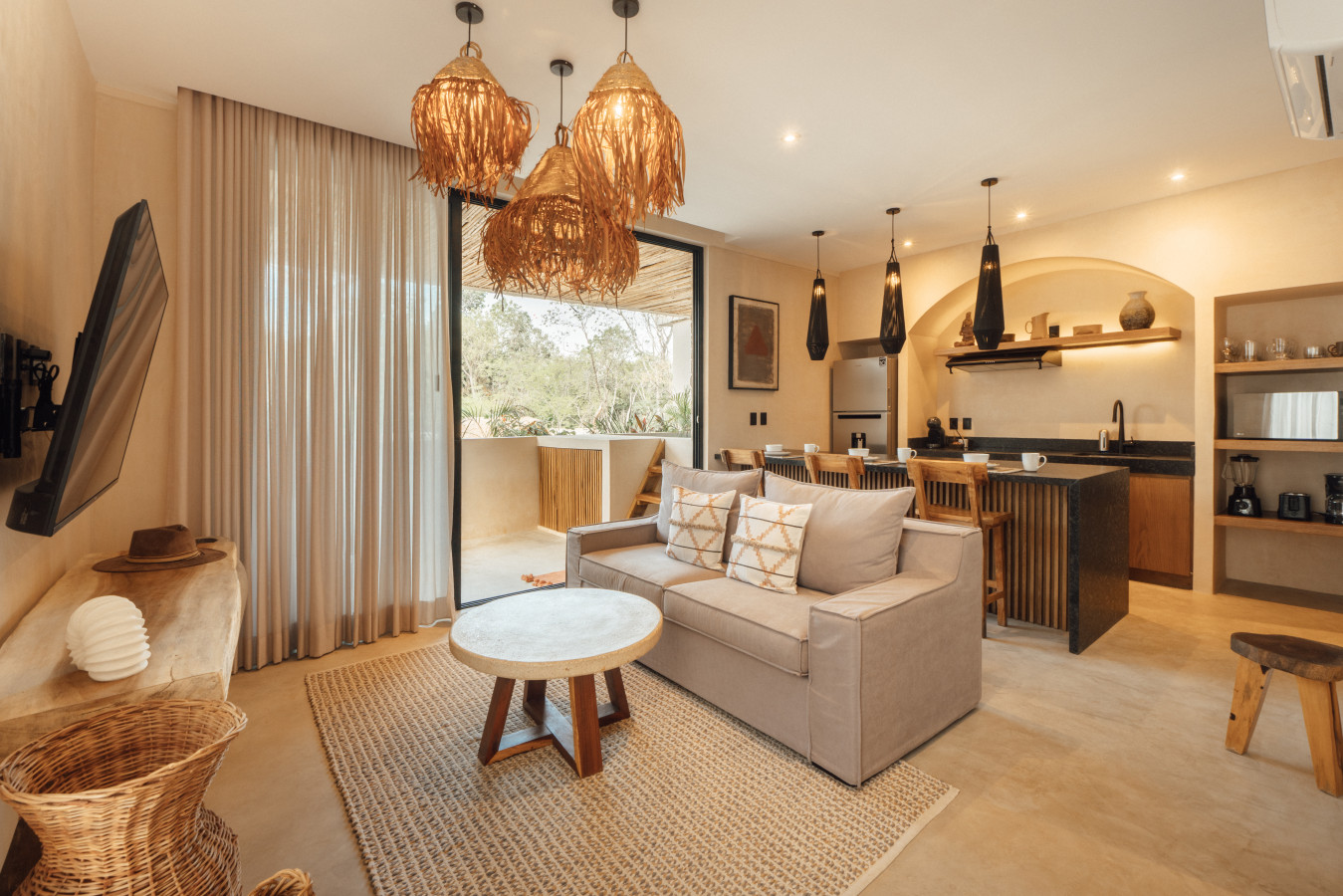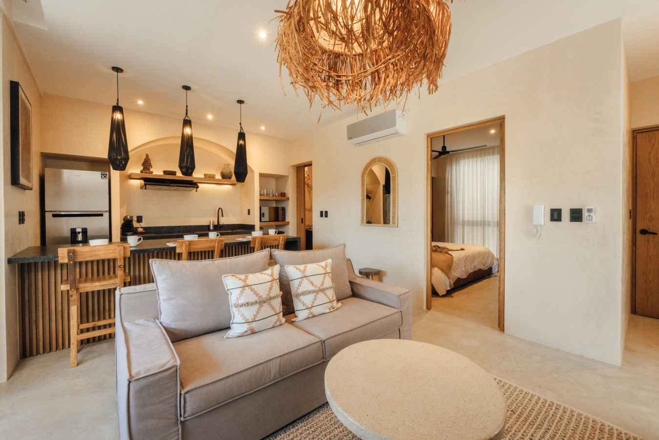 / nightStep into your apartment, where neutral hues and natural textures blend for a welcoming ambiance. This unit offers a private plunge pool, a complete kitchen with premium appliances, a sumptuous king bed, and a sofa bed accommodating up to four guests. Enjoy the convenience of an in-unit washer and dryer. Plus, access two stunning communal pools for sun-soaked relaxation. Experience the magic of Tulum at Satori, nestled in Region 15 just 6 minutes from the main avenue and 1 km into the jungle, providing the perfect blend of tranquility and easy access to the action. Only 3.5 km away, dive into the vibrant hotel zone, with its numerous beach clubs lining the stunning Caribbean coast. The route from Tulum Avenue offers convenient access to shops, restaurants, pharmacies, and a gas station. For a lively evening, the renowned Calle 7 in La Veleta, with its eclectic mix of restaurants, bars, and boutiques, is just a short trip away. Arriving at Your Tulum Escape: We want your arrival to be as seamless as possible. You’ll find convenient parking available directly in front of the condo. We recommend you download the directions and the internet password for the common areas so you can access the access code for your accommodation Check-in: 4:00 PM Check-out: 11:00 AM Housekeeping: Complimentary Housekeeping: Enjoy a free cleaning service every seven days of your stay. This includes tidying up the bathrooms and kitchen, making the beds, and cleaning the floors. Extra Cleaning: If you’d like a more thorough cleaning or more frequent service, just let your concierge know. (Additional fees apply and are subject to availability). Bedding & Towels: Linen Changes: For stays longer than seven days, fresh linens and towels will be provided during your complimentary cleaning. In-Unit Laundry: For your convenience, each unit has a washer and dryer. You can also request extra linen changes through your concierge for a small fee. Electricity: Power Supply Notes: Due to ongoing development in Tulum, occasional power outages may occur due to work by the CFE (Mexico's Federal Electricity Commission). These outages are sometimes announced in advance, but schedules can change. During the rainy and hurricane seasons, outages can be more frequent and last longer. What We Provide: We have flashlights and rechargeable fans available for your use. Electricity Usage: We’ll take a meter reading at check-in and check-out. Your reservation includes ___ kw/h per day. Usage beyond this will be charged at __ per kw/h. Internet Access: Wi-Fi Details: You’ll receive the Wi-Fi network name and password upon arrival. Tech Support: Please contact your concierge if you experience any issues with the internet. Possible Disruptions: Internet service may be affected during heavy rains and hurricanes. Water: Tap Water: The tap water is not suitable for drinking or cooking, but it’s perfectly safe for brushing your teeth and showering. Waste Disposal: Recycling & Trash: Each unit has separate bins for organic and inorganic waste. Trash Removal: Our housekeeping staff will empty the trash during your complimentary cleanings. There are also larger bins available for guests outside the building. Air Conditioning: Optimal AC Use: The ideal setting for the mini-split AC units in this area is 24°C (75°F). Maintenance Requests: Please report any issues with the AC immediately. Responsible Use: Please turn off the AC/heating when you leave the unit. Hot & Cold Water: Faucet Operation: In Mexico, turning the tap to the right is for cold water, and turning it to the left is for hot water. Hot Water Warm-Up: Please note that it may take a few minutes for the hot water to come through. Your Well-being is Our Priority: At Satori, we value communication with our guests and look forward to meeting you. We will be available at the property from 9:00 a.m. to 6:00 p.m. to provide you with the best service. . In case of an emergency outside of these hours, please contact any member of our staff or the security guard, who will be ready to assist you. Relaxed among nature It is advisable to rent a car, or motorcycle for easy access to the beach and town. Bikes rented on site. Welcome to Satori Tulum, an exclusive sanctuary nestled in the heart of Tulum’s lush jungle. Here, luxury meets nature in perfect harmony, offering you an unparalleled getaway that blends refined architectural design, high-quality natural materials, and vibrant greenery. Immerse yourself in an oasis featuring two spectacular main pools, thoughtfully curated spaces, and a serene ambiance designed to inspire relaxation and connection. While our location is a quick 7-minute drive from both Tulum’s vibrant town center and pristine beaches, the tranquil jungle setting ensures a peaceful retreat from the bustle. Please note that construction is ongoing nearby, with light noise possible between 9 am and 7 pm. However, the serenity of Satori Tulum and its wealth of amenities will undoubtedly make your stay memorable.