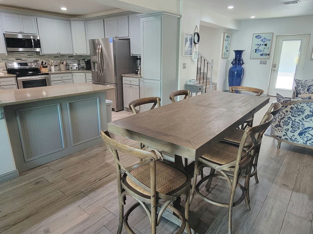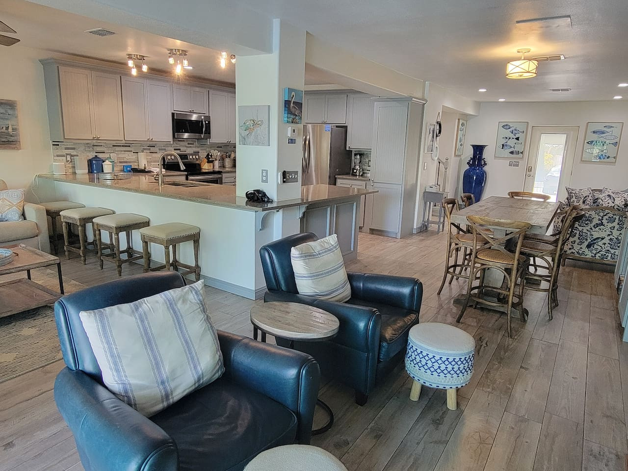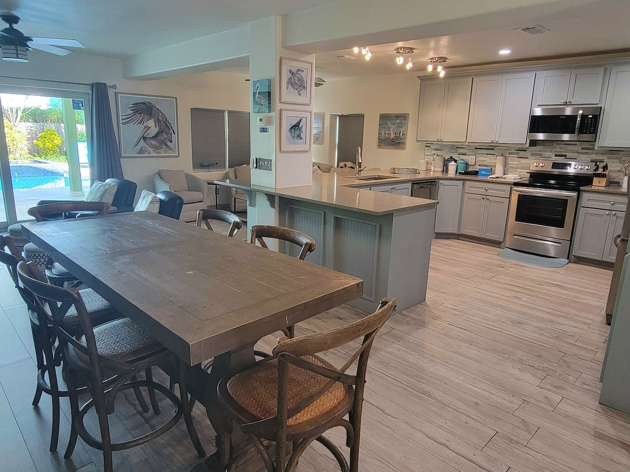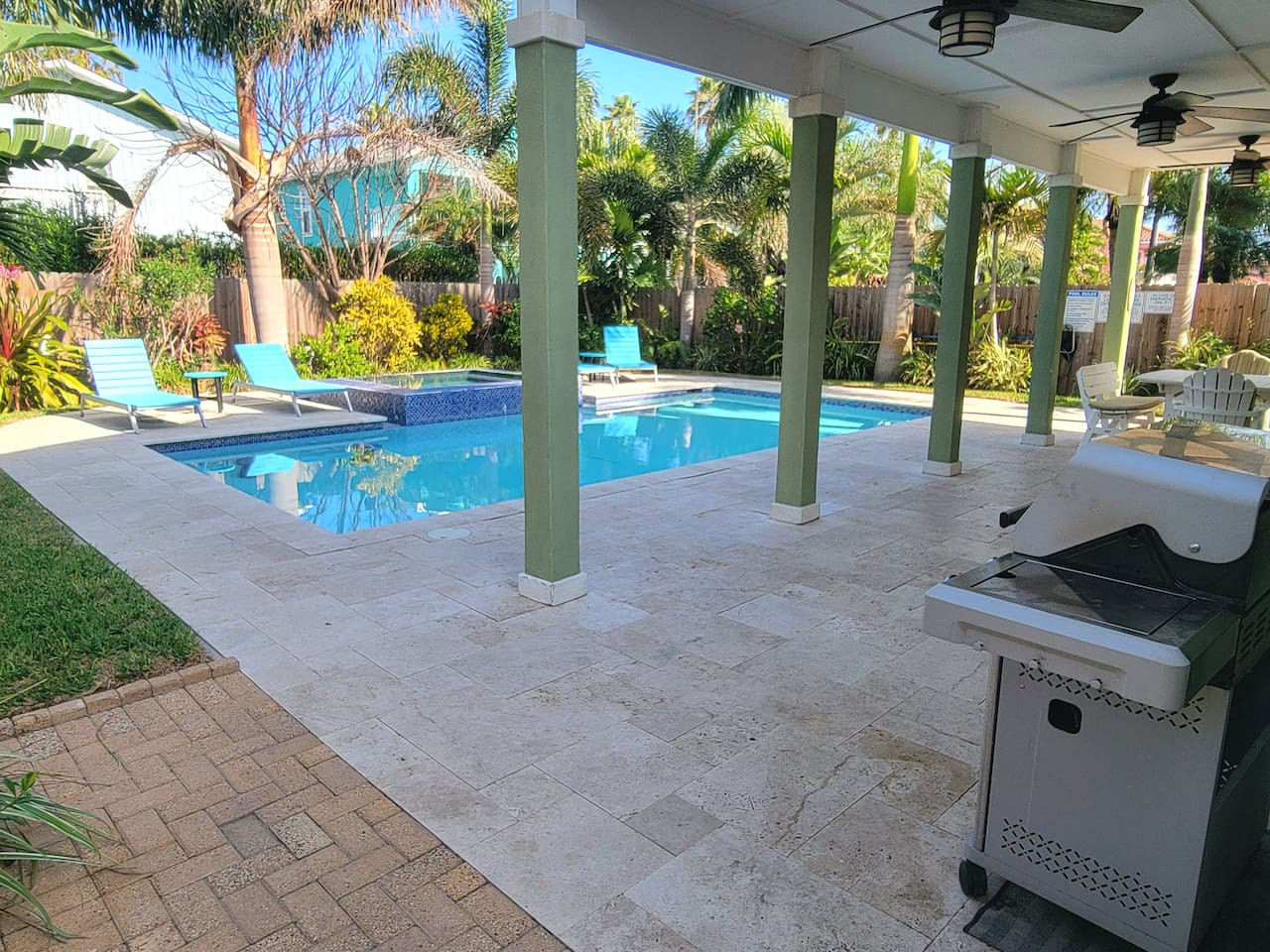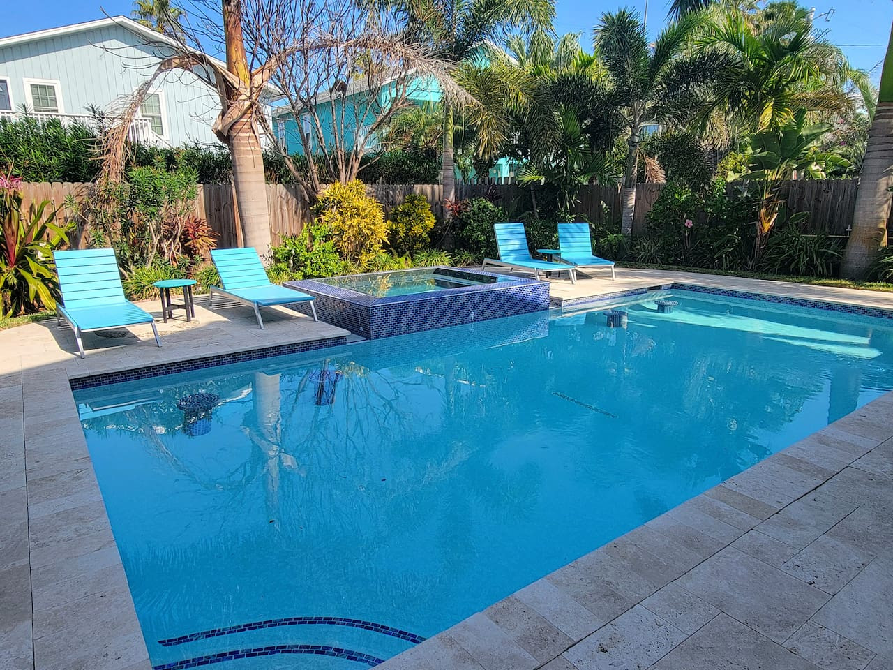 / nightThis stunning 3/3, two-story retreat is designed for relaxation, connection & unforgettable memories. Nestled in a lush, tropical setting, this home blends laid-back luxury with resort-style fun. Step outside to your private pool and hot tub, surrounded by vibrant greenery and warm island breezes—the perfect spot for morning swims, sunny afternoons, or starlit evenings with a drink in hand. This outdoor oasis is the heart of the home.